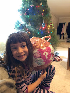We went to visit Santa via the Christmas train in Irvine Regional park. Violet remained wary of Santa but was willing to sit on his lap this year. It was the evening of December 23 and she told Santa she wanted a rainbow zebra stuff animal. Santa had to rush to meet that new demand but he got it done.